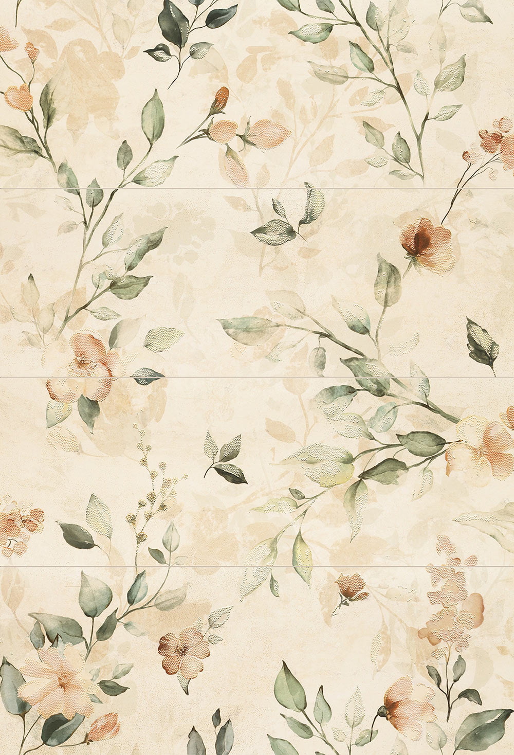 Decor floral compus din 4 elemente ce se potriveste armonios in aceasta colectie de placi ceramice cu aspect de piatra naturala / travertin.